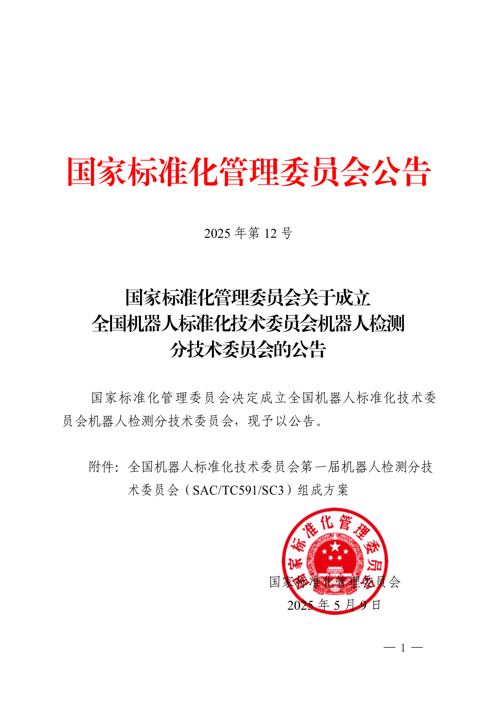 5月9日,国家标准化管理委员会发布《关于成立全国机器人标准化技术委员会机器人检测分技术委员会的公告》,决定成立全国机器人标准化技术委员会机器人检测分技术委员会(以下简称:分技术委员会),主要负责全国机器人检测与评估领域标准化工作,秘书处由上海电器科学米兰·(milan)中国官网承担,我院专家邢琳任委员兼秘书长。