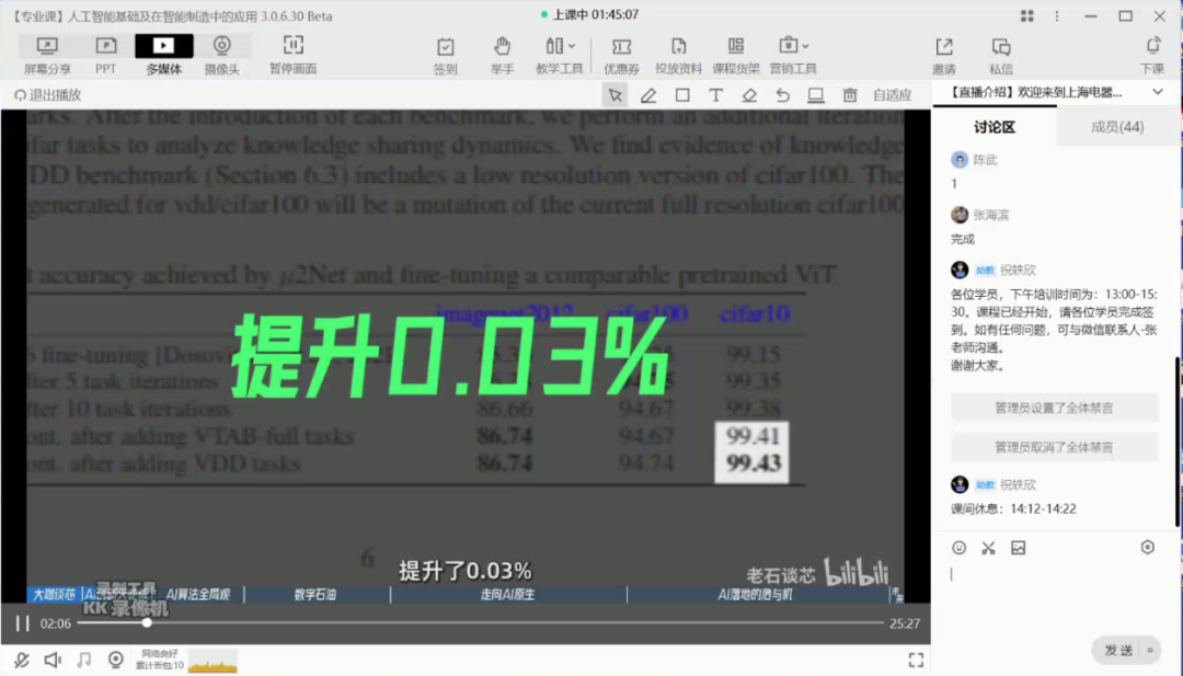 本次培训采取线上直播形式,参加学员共计44人,来自中国电信股份有限公司上海机器人米兰·(milan)中国官网、中国联合网络通信有限公司上海市分公司、中移(上海)信息通信科技有限公司、上海人工智能创新中心、宝信软件股份有限公司、上海建工集团投资有限公司、上海浦东发展银行股份有限公司、上海复旦微电子集团股份有限公司、健康云(上海)数字科技有限公司、新智道枢(上海)科技有限公司、上海有个机器人有限公司等30多家企事业单位。