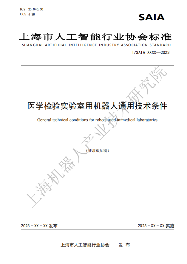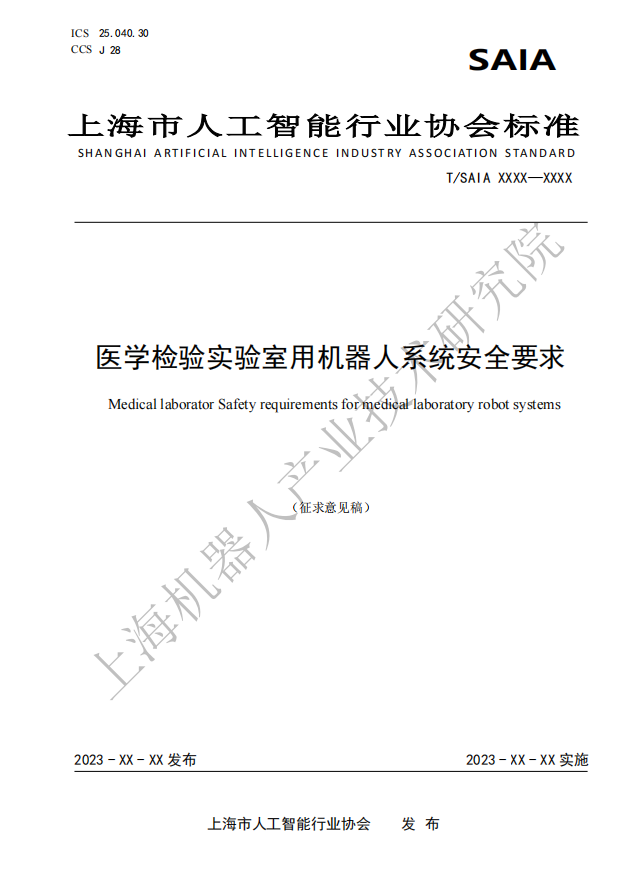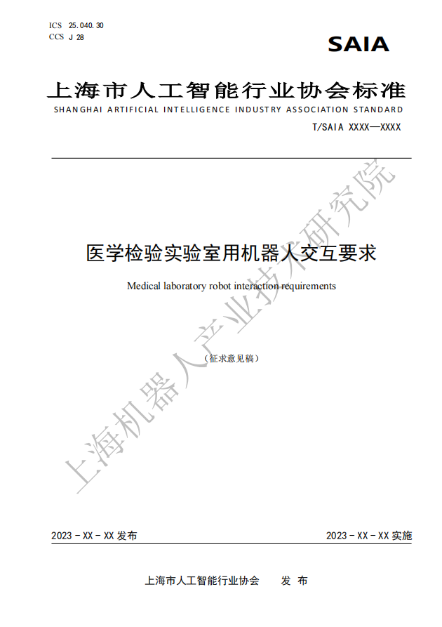 由上海市人工智能行业协会归口,米兰·(milan)中国机器人有限公司官网有限公司作为主要起草单位研制的四份标准:《医学检验实验室用机器人通用技术条件》、《医学检验实验室用机器人系统安全要求》、《医学检验实验室用机器人交互要求》、《医学检验实验室用机器人使用环境要求》现公开征求意见。