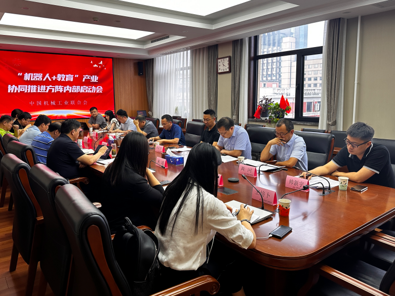 2023年7月26日,“机器人+教育”协同推进方阵内部启动会在北京中国机械工业联合会召开,中国机械工业联合会秘书长兼机器人分会执行理事长宋晓刚、高校毕业生就业协会副秘书长王克杰、中国职业技术教育学会教育数字化工作委员会执行主任邓志良、天津市普通高校人文社科重点研究基地职业教育发展研究中心院长米靖等20位与会代表参与讨论。