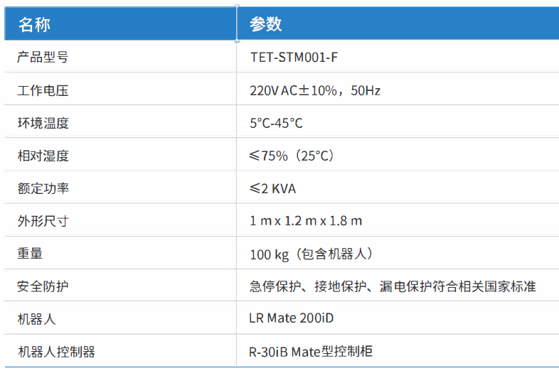 该平台由工业机器人、实训平台、急停按钮和使能开关的原理教学模块、安全光栅和安全地毯的原理教学模块、机器人核心零部件维护教学模块等组成。可以实现机器人安全链、电气安全知识、机器人故障代码及维修、机器人核心零部件、机器人保养周期和内容等工业机器人维修维护知识的培训。